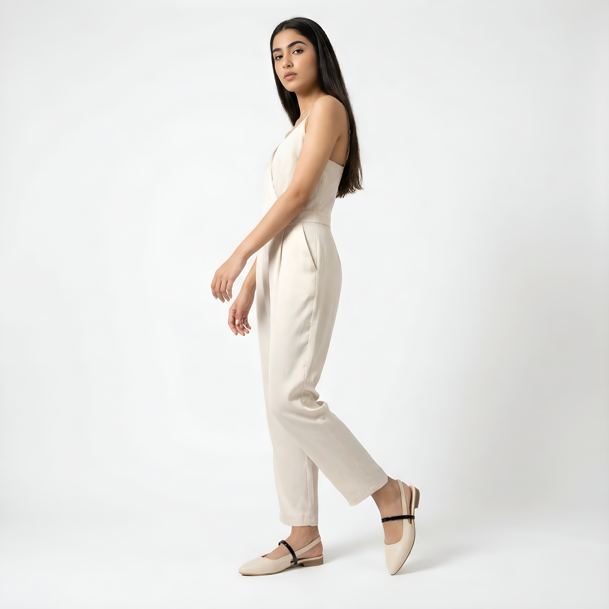 - حزام بيج متباين – لمسة عصرية تضيف ثباتاً وأناقة.