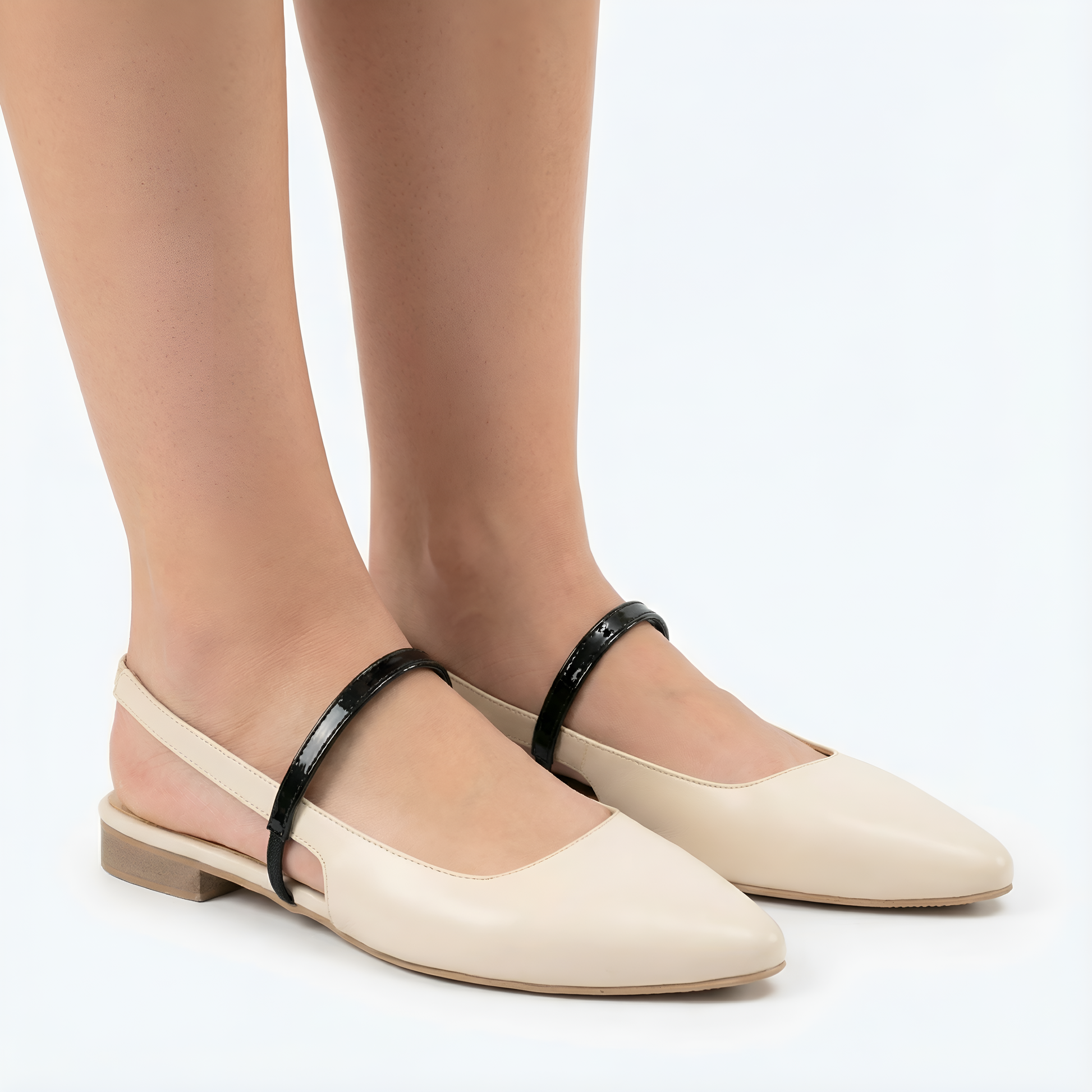 ارتقي بأسلوبك مع حذاء نوار، الذي يجمع بين الأناقة العصرية واللمسة الكلاسيكية. مصنوع من جلد برّاق فاخر باللون الأسود، بتصميم مقدمة مدببة تمنحك مظهراً راقياً ومميزاً. يضيف الحزام البيج المتباين لمسة أنيقة تعزز من جاذبية التصميم وتوفر ثباتاً مثالياً.