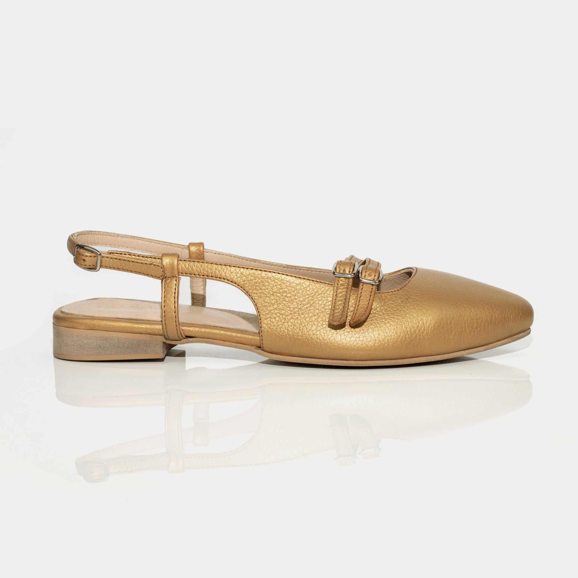 التصميم مزود بمقدمة مدببة وأشرطة أمامية مزدوجة تضيف لمسة أنثوية أنيقة، إلى جانب حزام خلفي قابل للتعديل لمقاس مريح وثابت. النعل الداخلي مبطن بطبقتين من الجلد الطبيعي لراحة تدوم طوال اليوم، والنعل الخارجي المطاطي يمنحك مرونة وثبات مثالي.