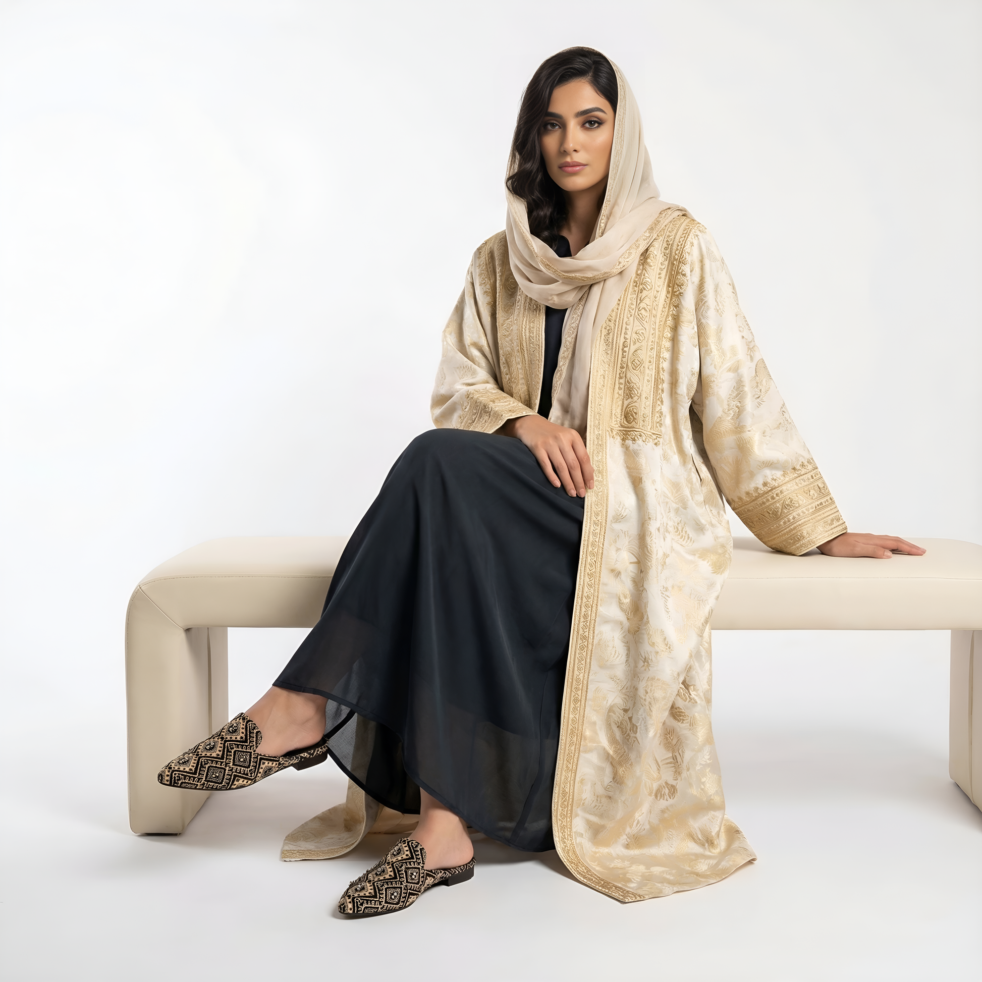 - Upper: Embroidered by hand using premium Linen fabrics and artisanal stitching techniques featuring intricate embroidery with metallic accents.